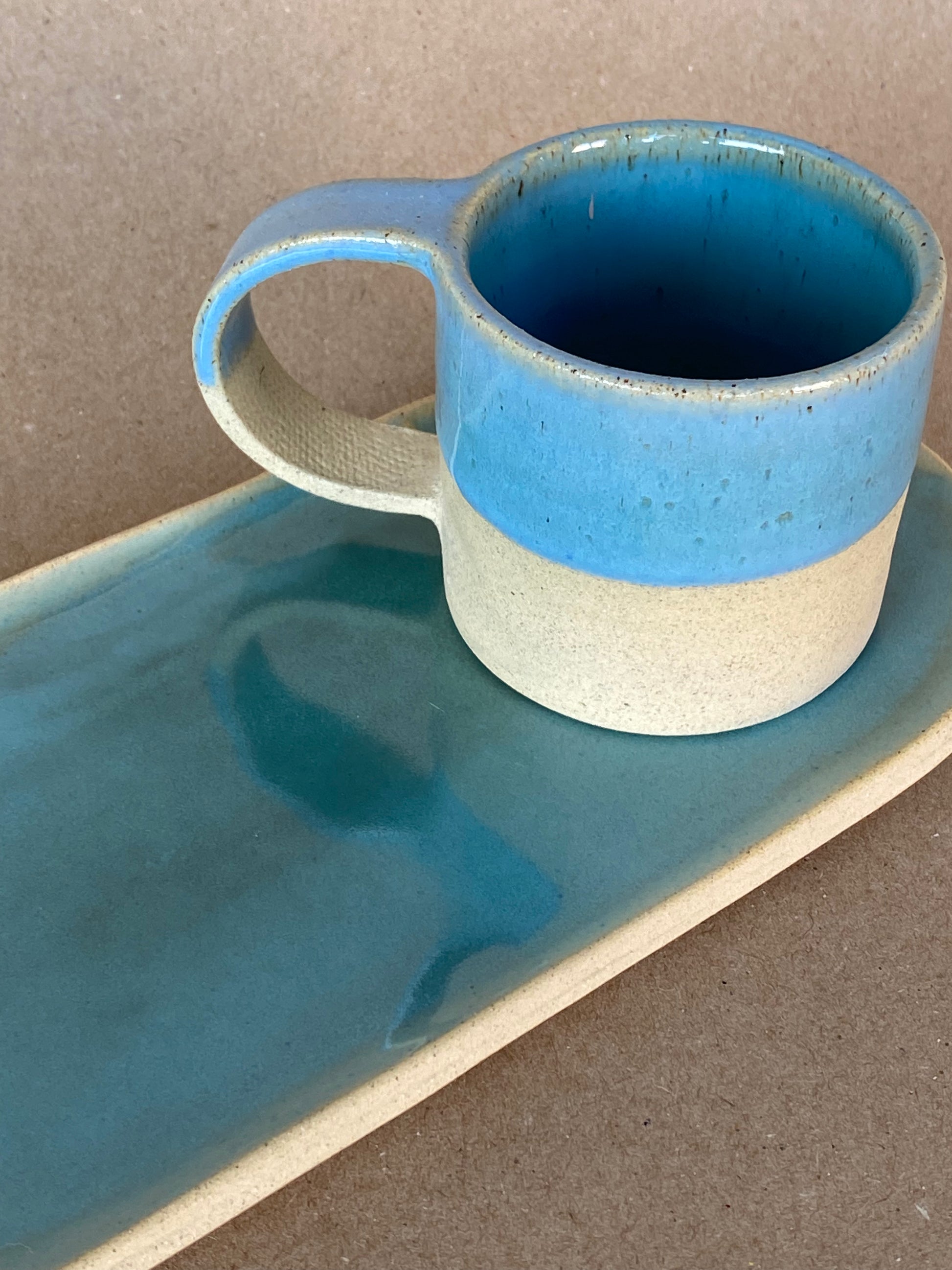 Bandejita en gres claro y esmalte artesanal color turquesa.