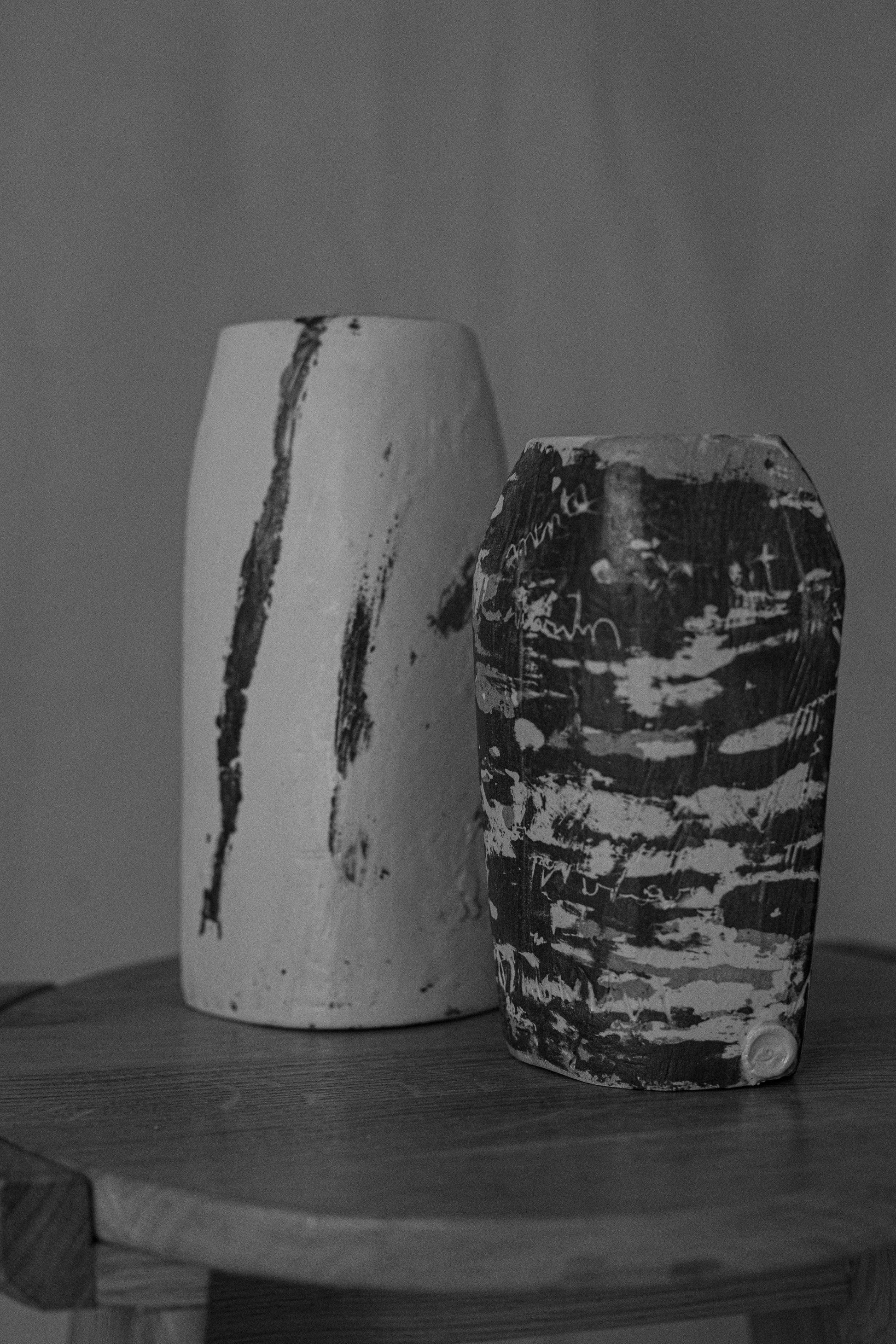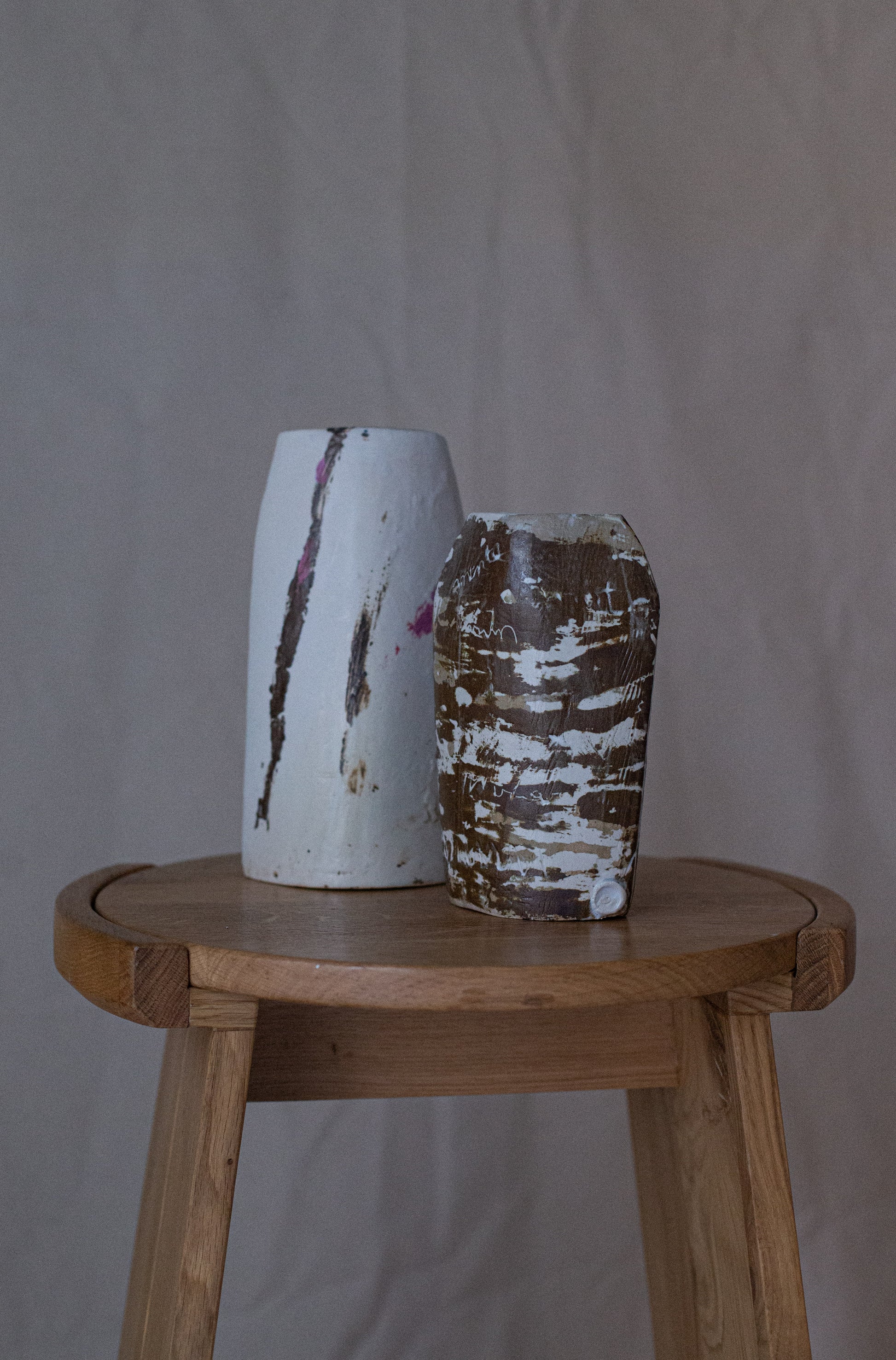 Colección de piezas unicas realizadas en gres blanco. Pintadas de forma artesanal con colores primarios mediante diferentes técnicas. Todas las piezas son diferentes.