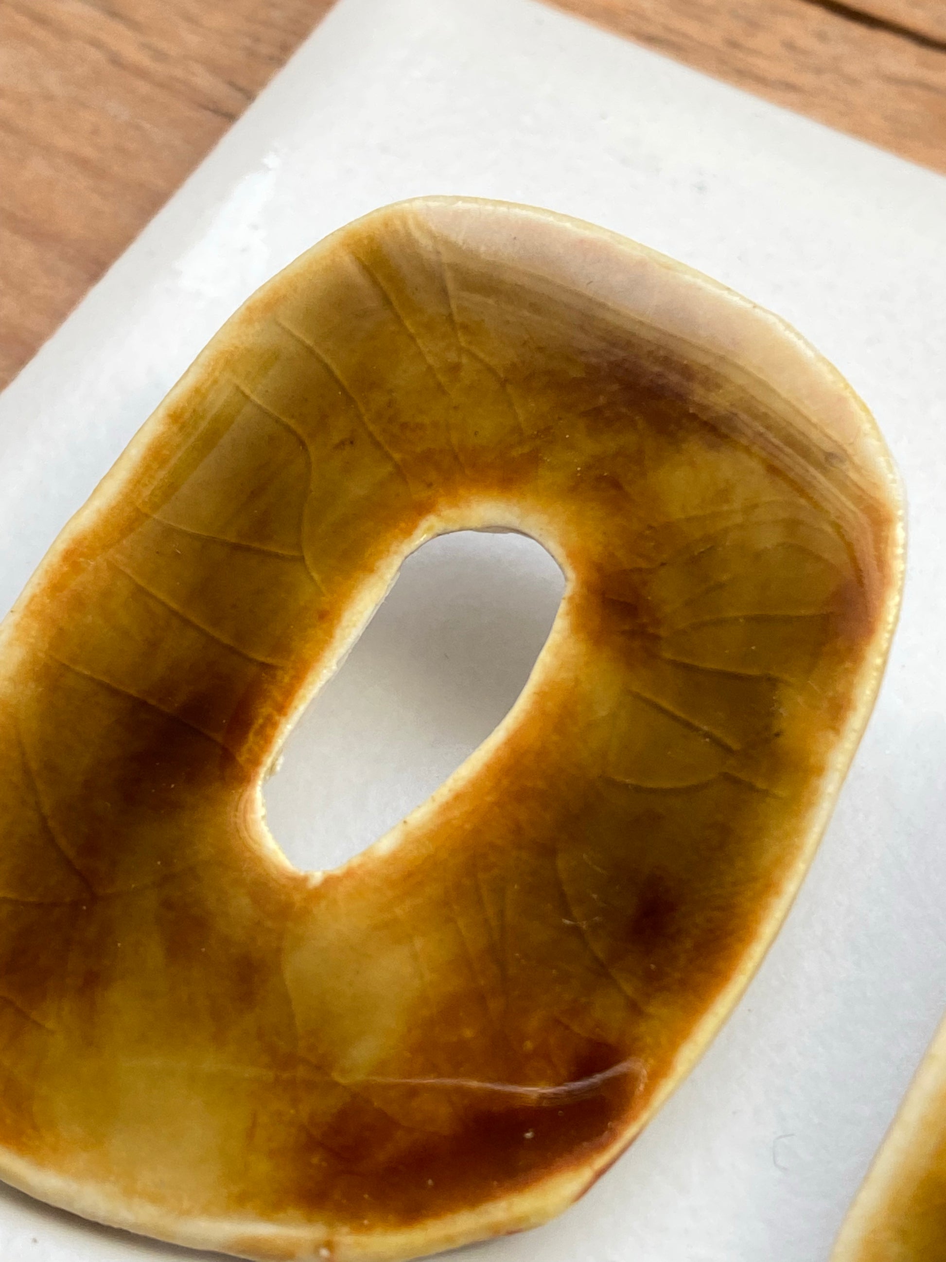 Pendientes hechos en porcelana color Ocre. Bases de acero inoxidable, son hipoalergénicos.