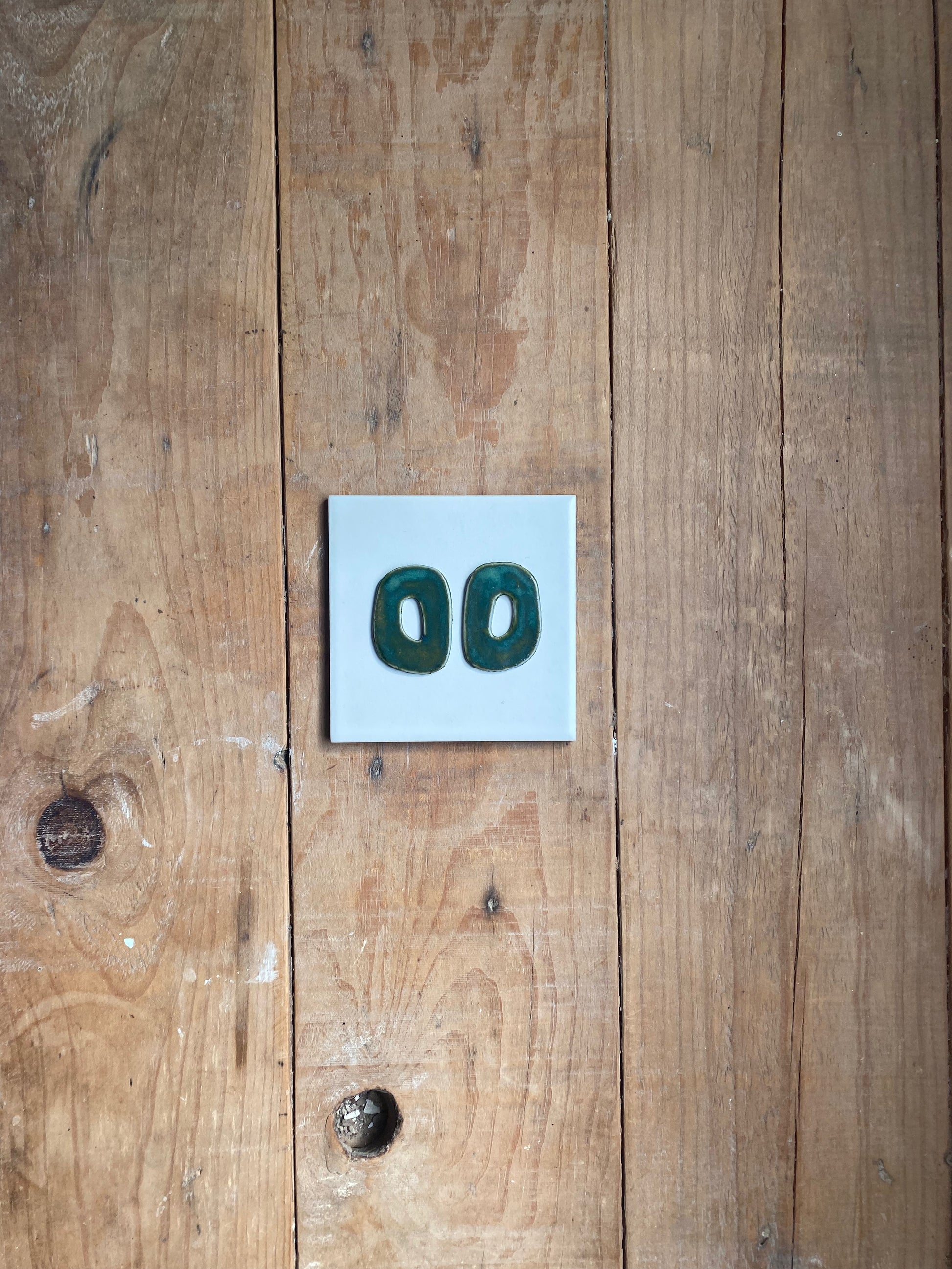 Pendientes hechos en porcelana blanca y esmalte artesanal verde azulado.