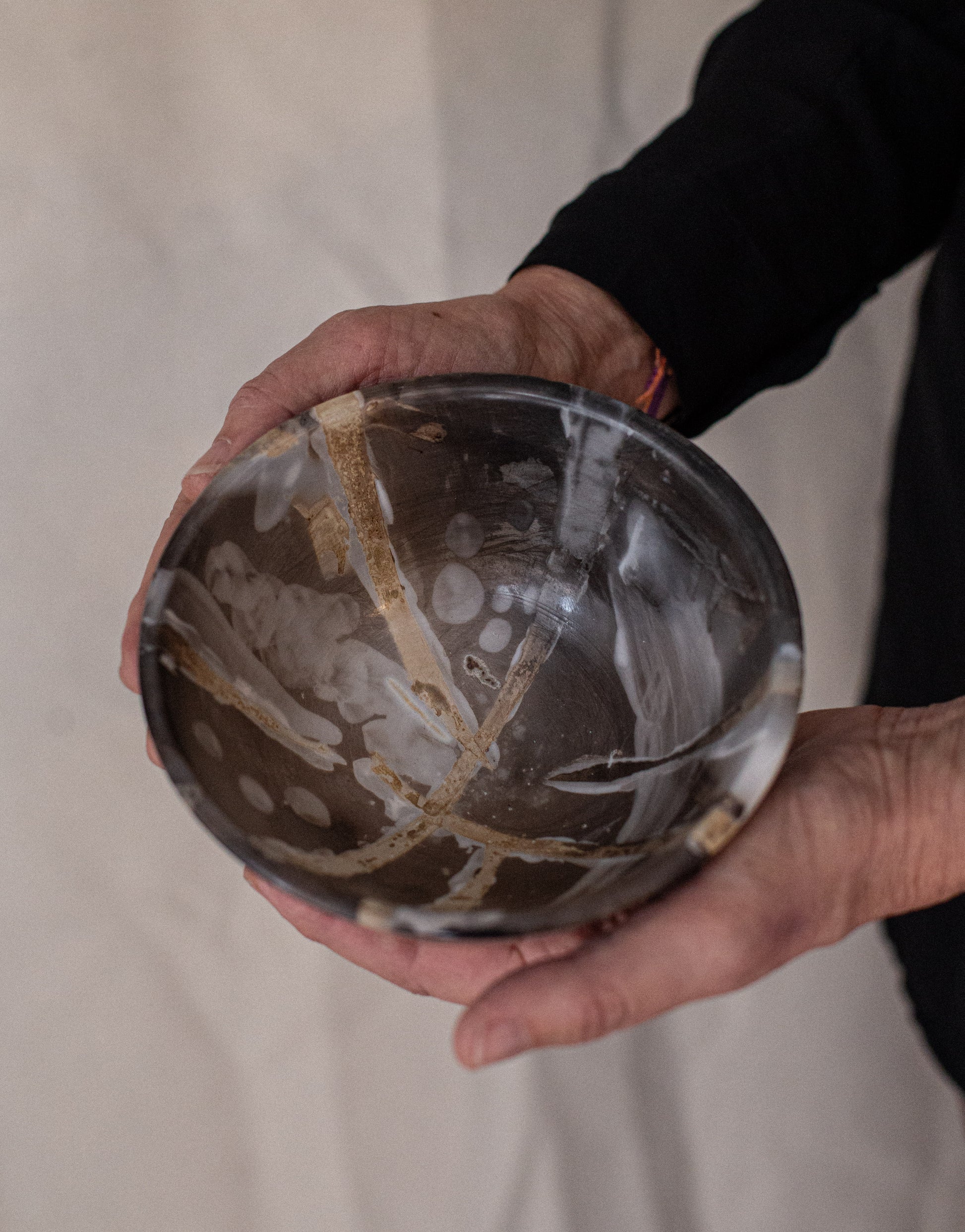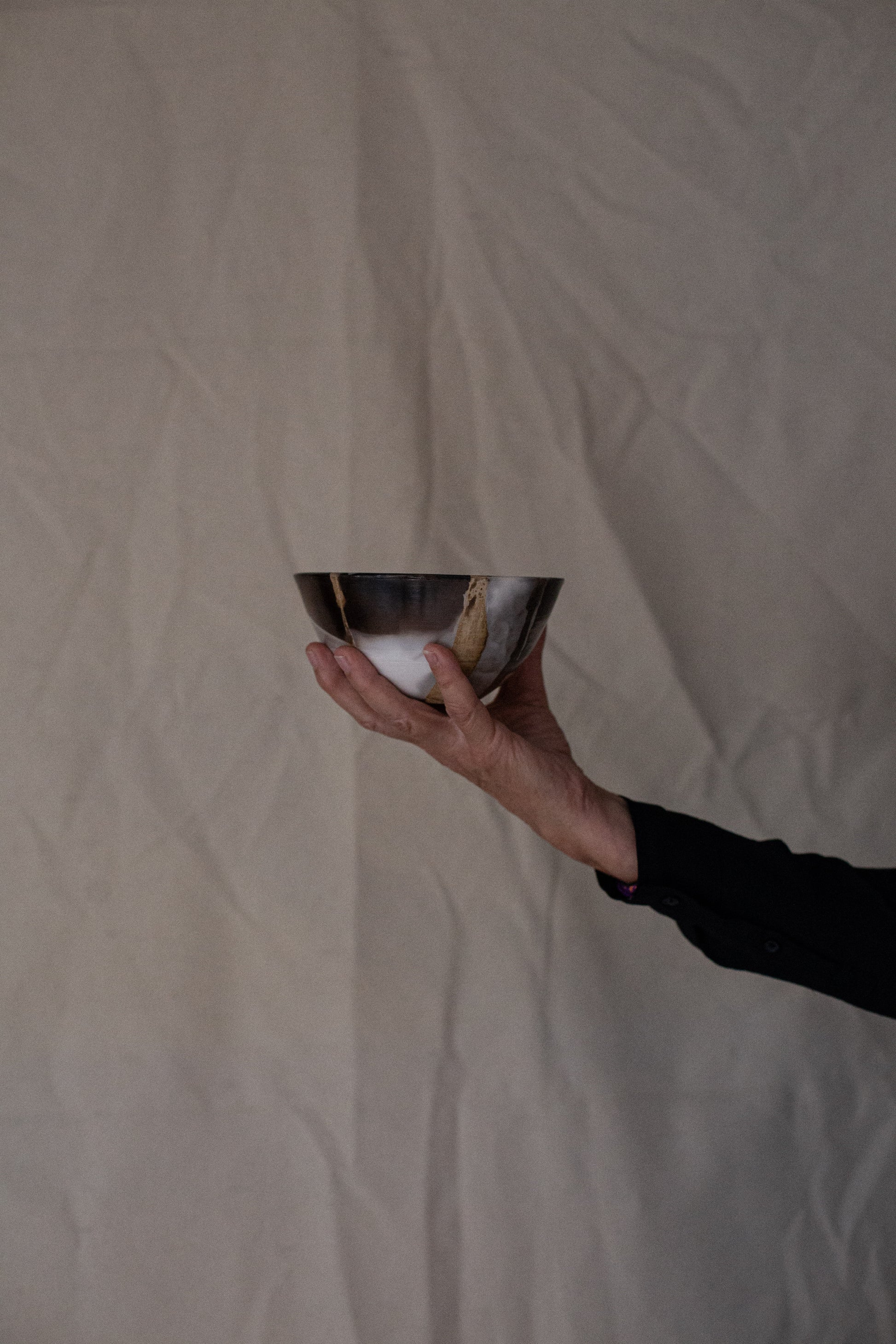 Pieza única realizada en torno y decorada mediante técnica de Pit Firing.