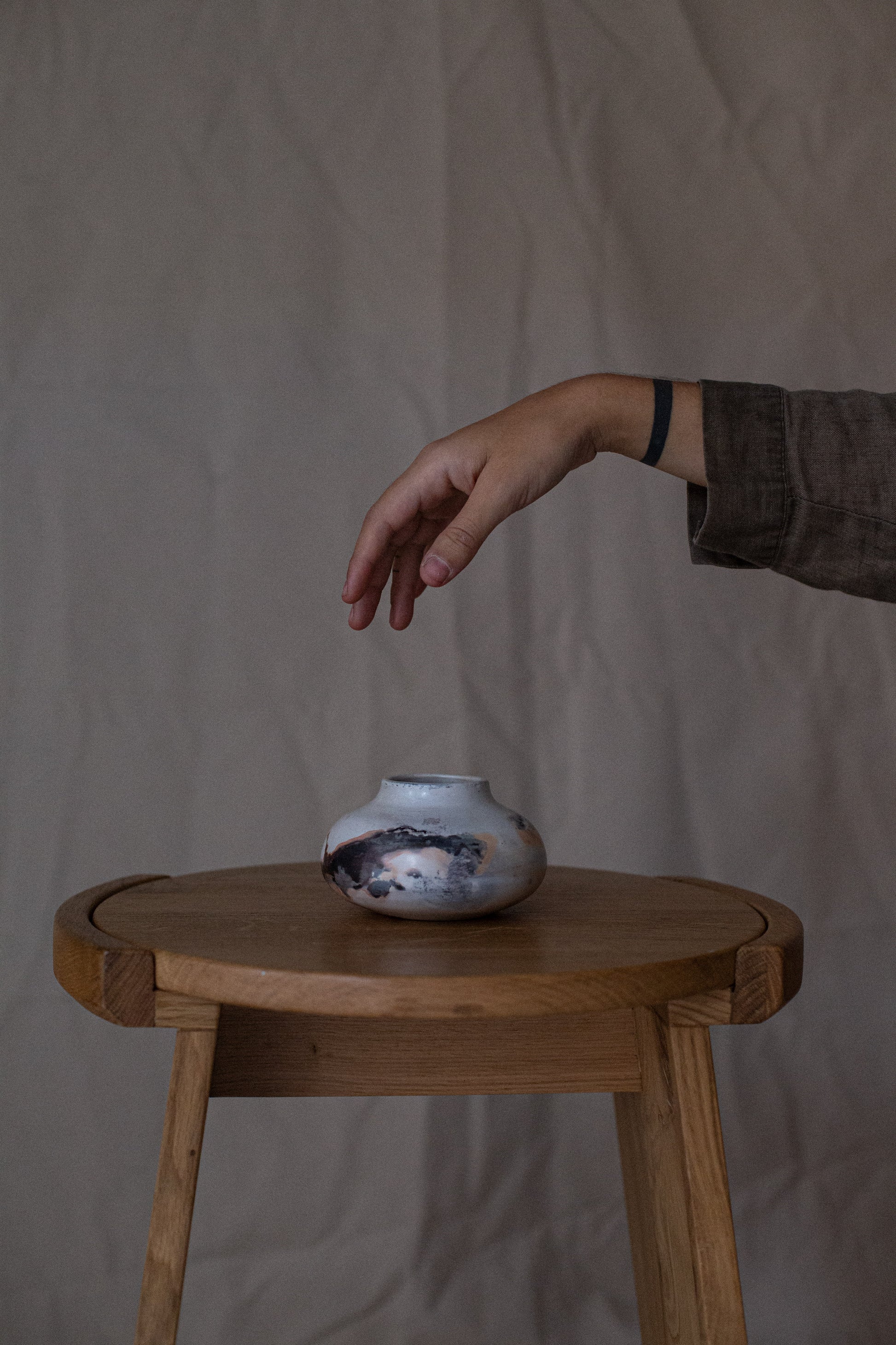 Pieza única realizada en torno y decorada mediante técnica de Pit Firing.