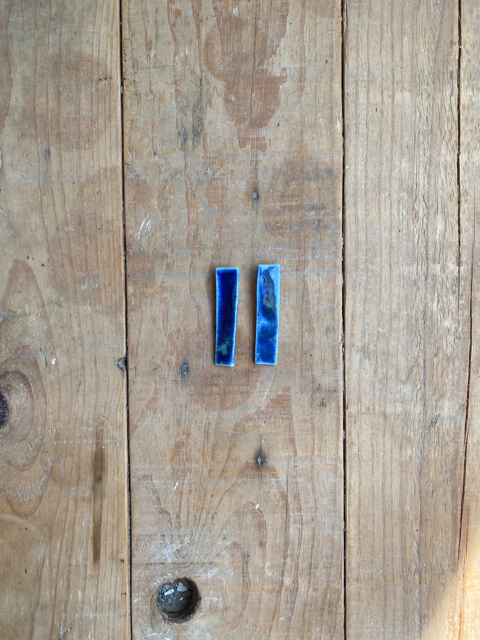 Pendientes hechos en porcelana blanca con esmalte artesanal color azul melange.