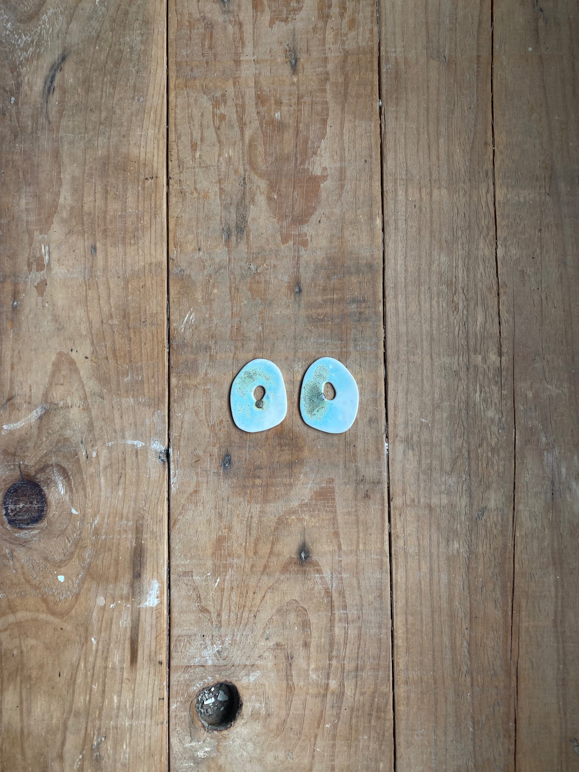 Pendientes hechos en porcelana blanca color aguamarina. Bases de acero inoxidable, son hipoalergénicos.