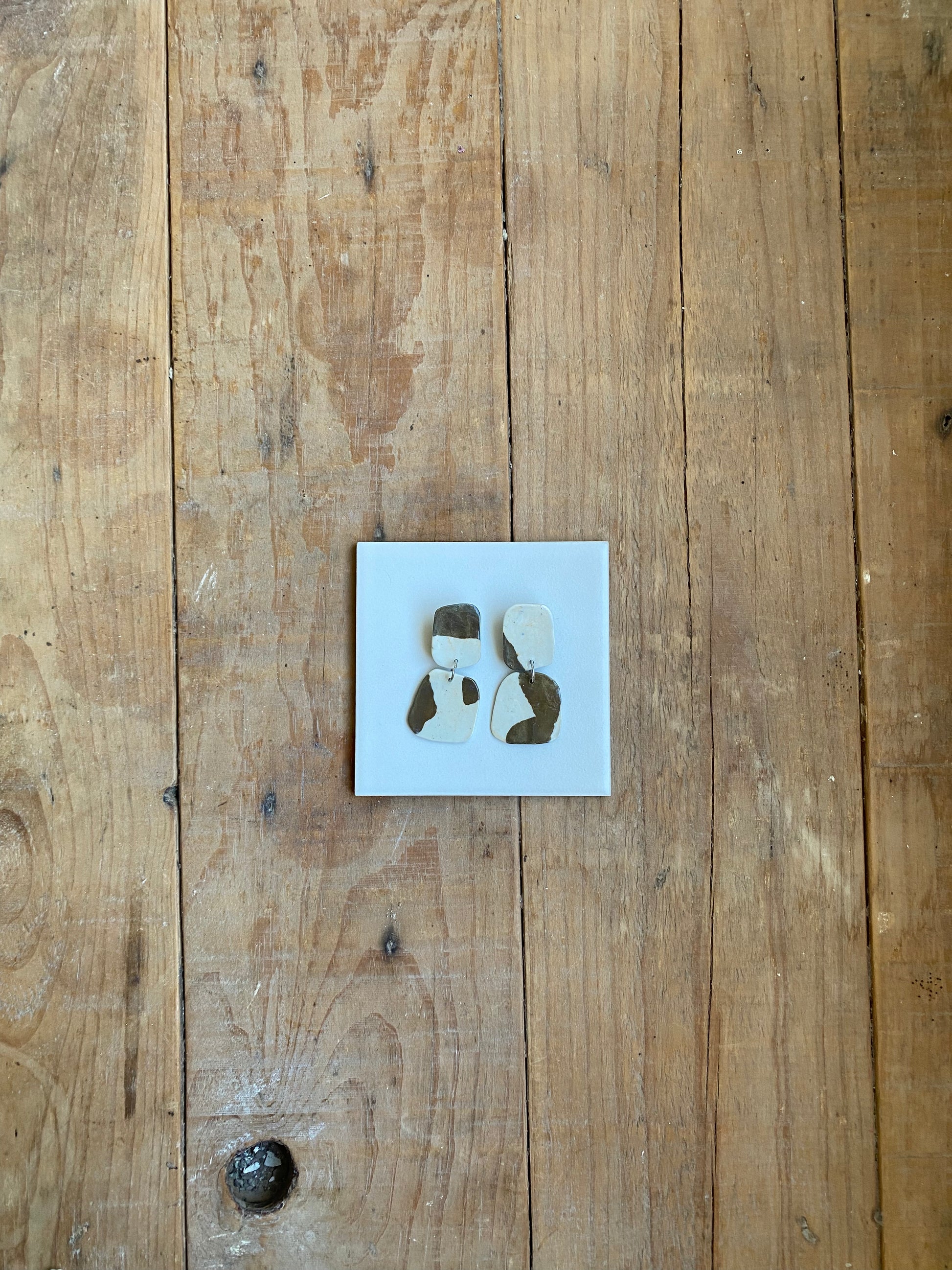 Pendientes hechos en porcelana blanca y negra con esmalte transparente mate. Bases de acero inoxidable, son hipoalergénicos.