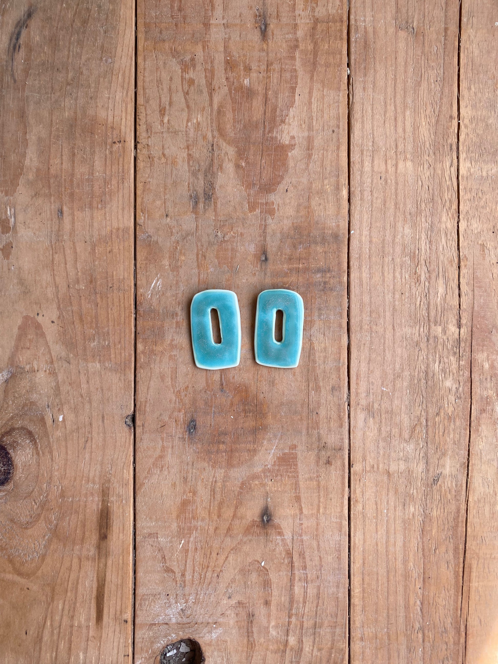 Pendientes hechos en porcelana blanca y esmalte artesanal verde estrellado. Bases de acero inoxidable, son hipoalergénicos.