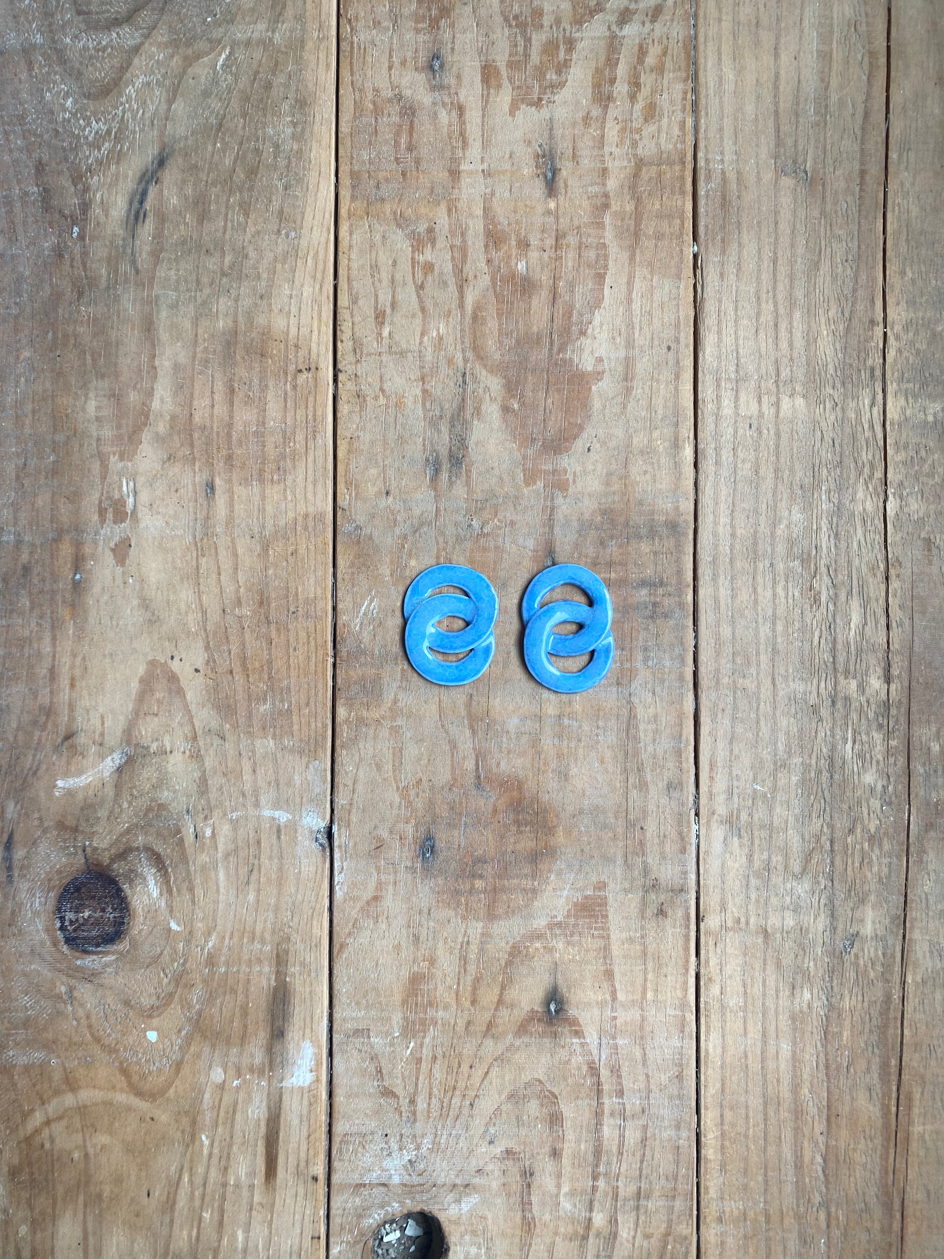 Pendientes hechos en porcelana blanca y esmalte artesanal color azul ferruxe.