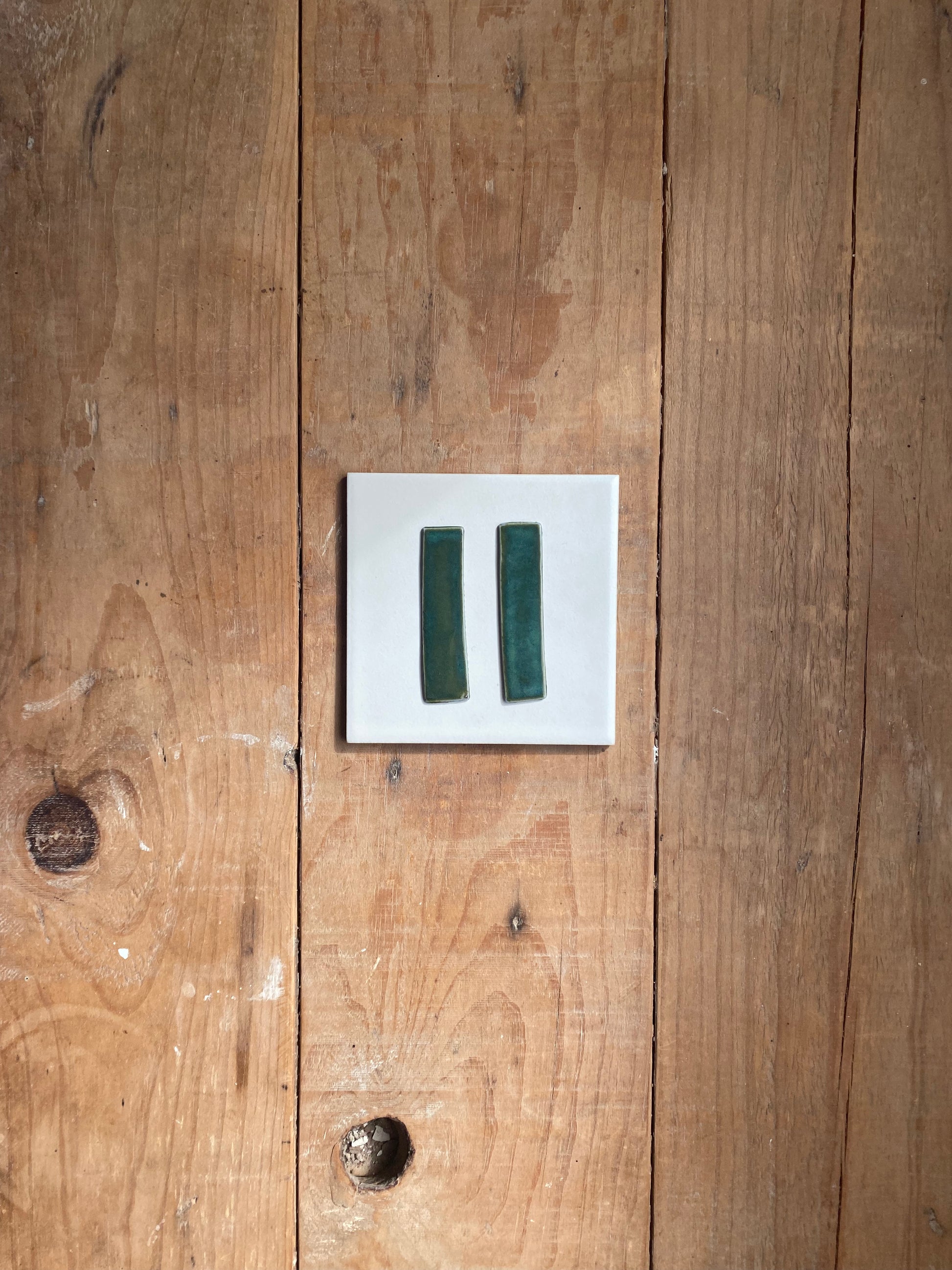 Pendientes hechos en porcelana blanca con esmalte artesanal color azul verdoso.