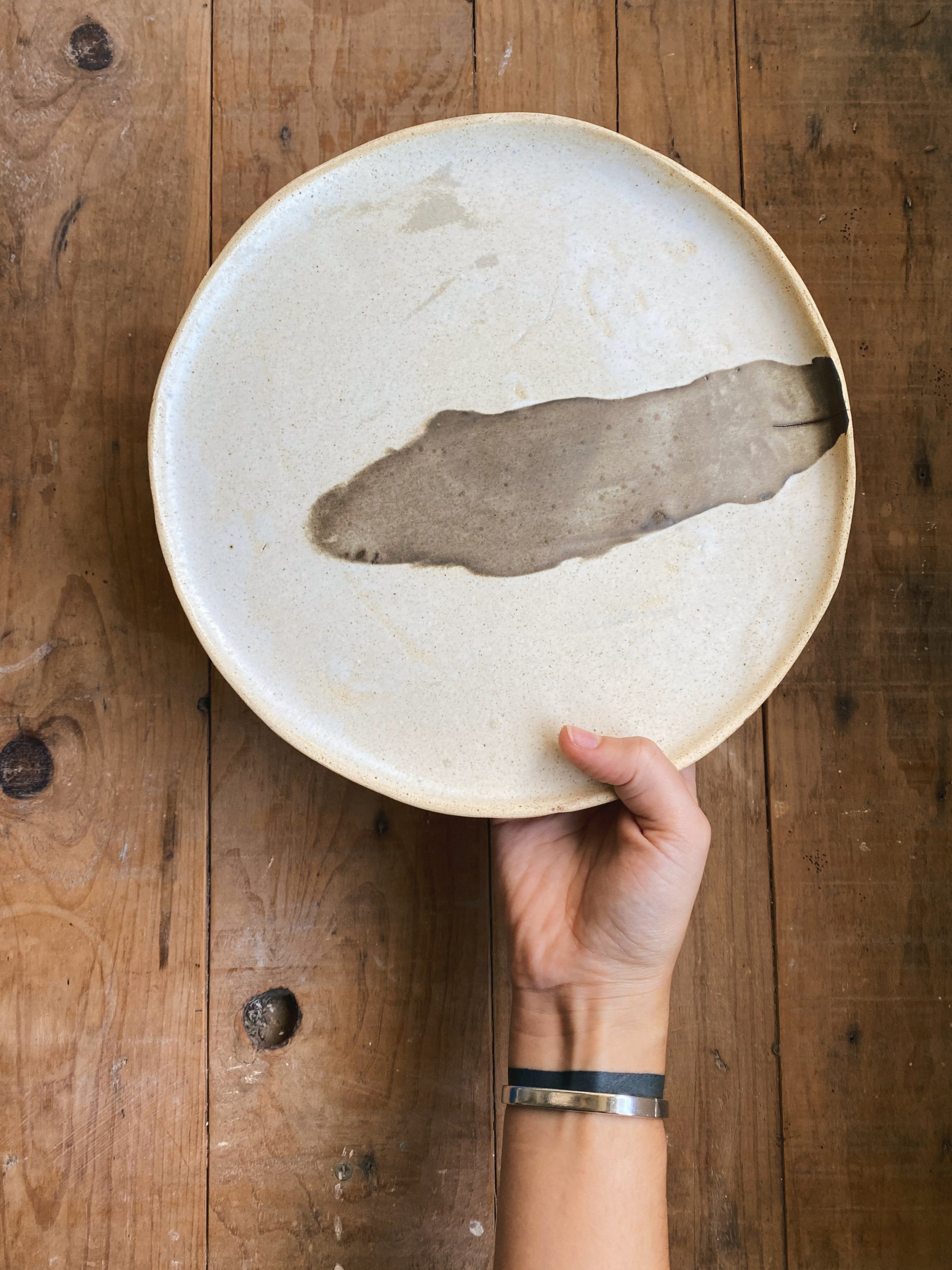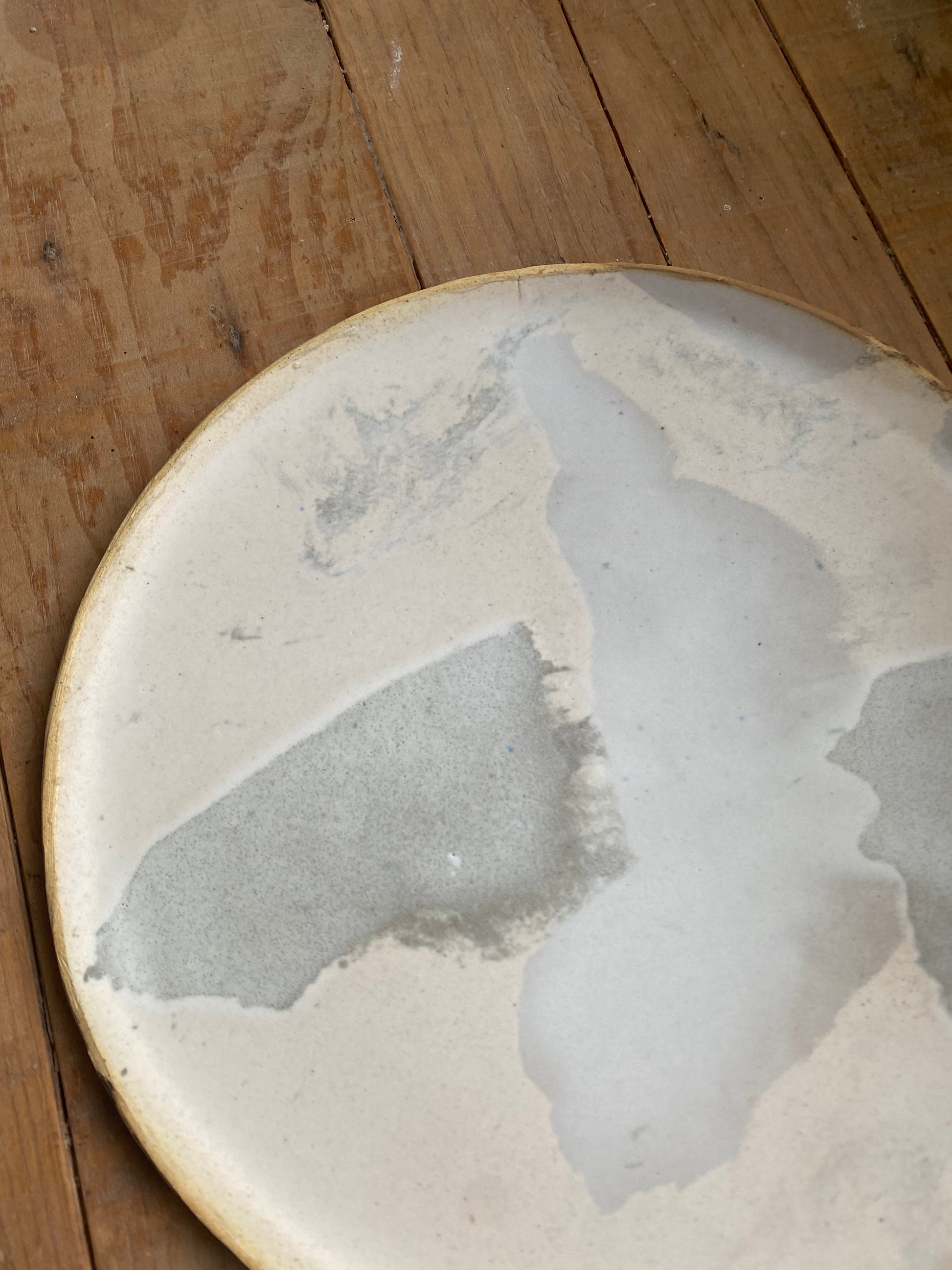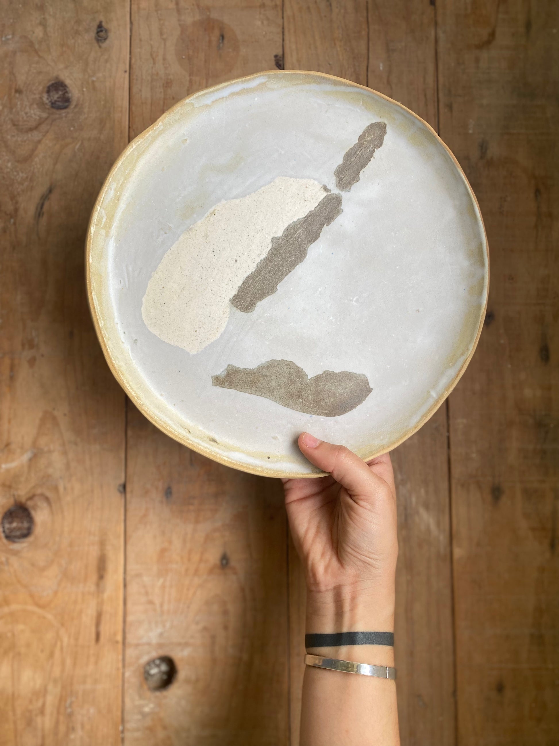 Plato grande hecho a mano con mezcla de gres blanco y negro.