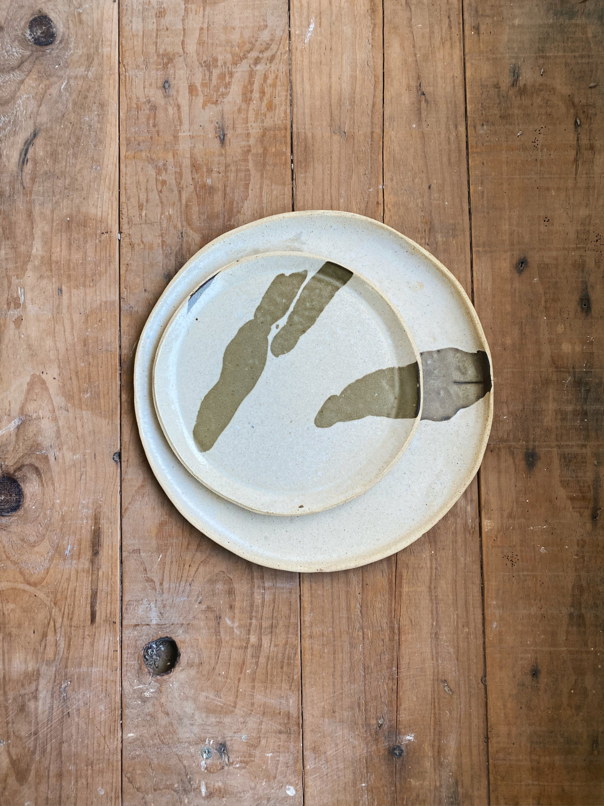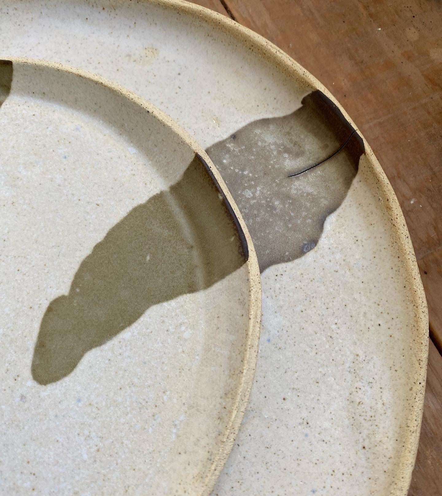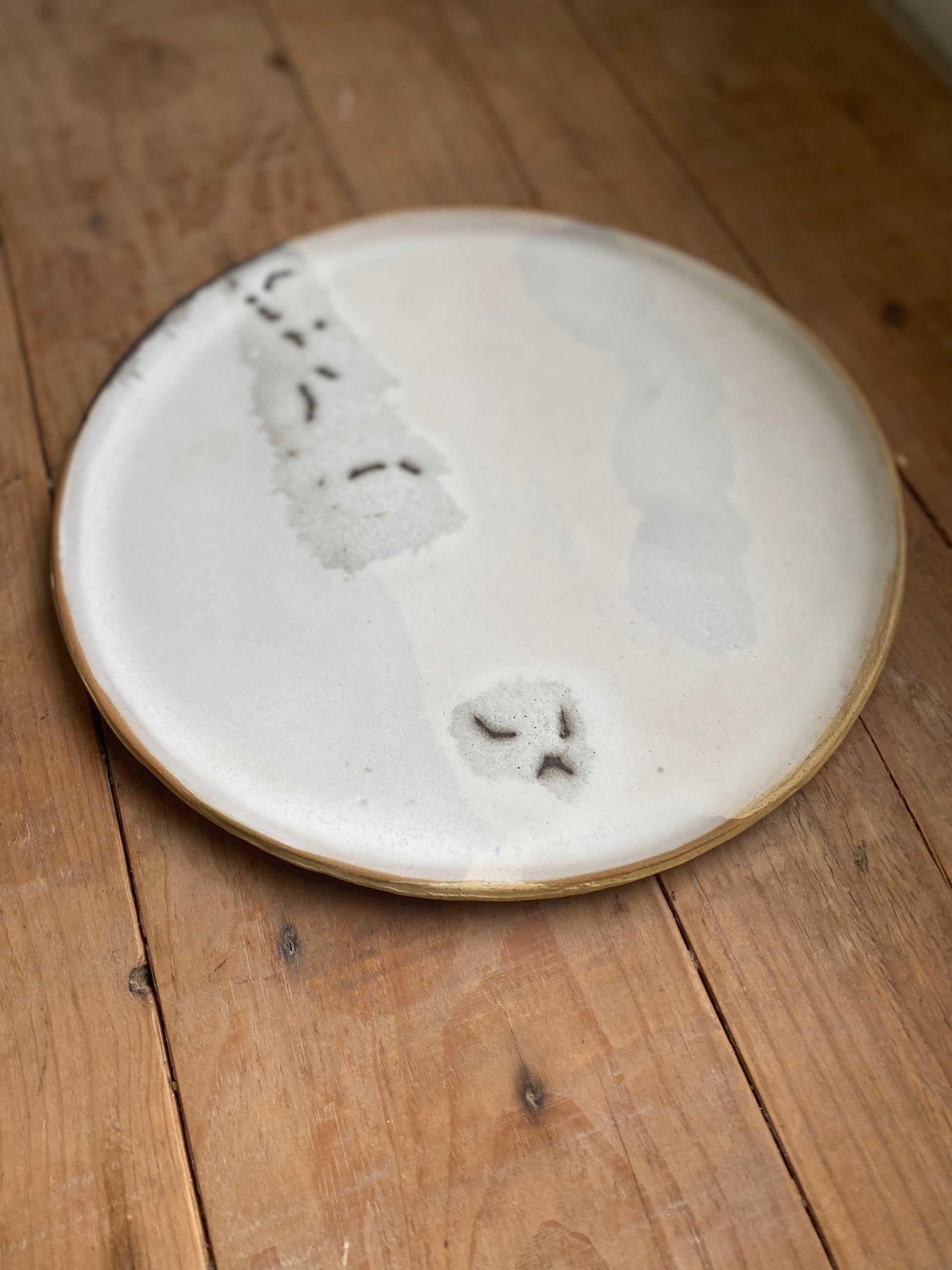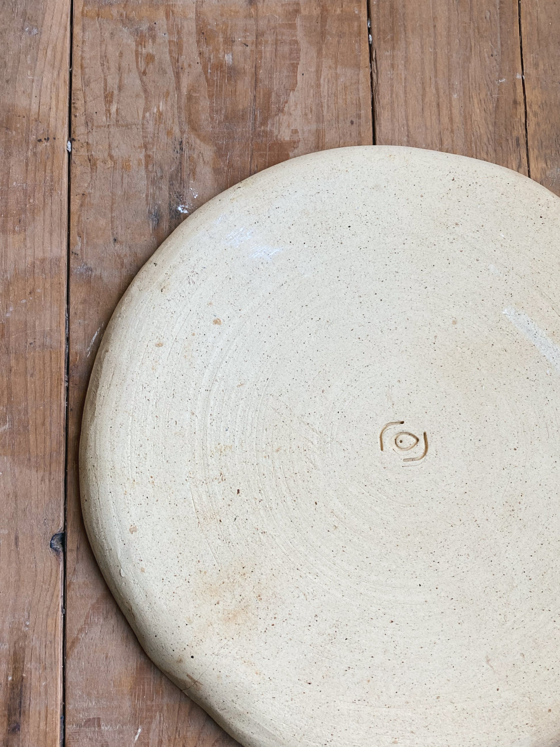 Plato grande hecho a mano con mezcla de gres blanco y negro.