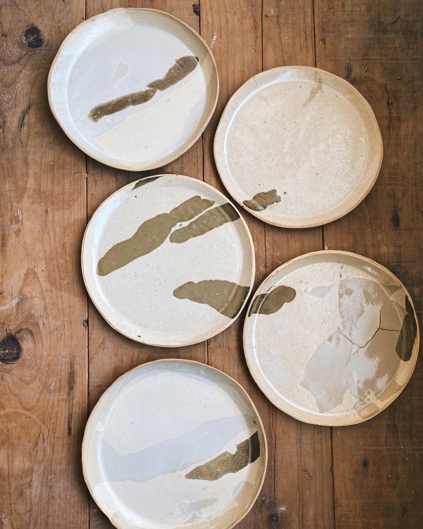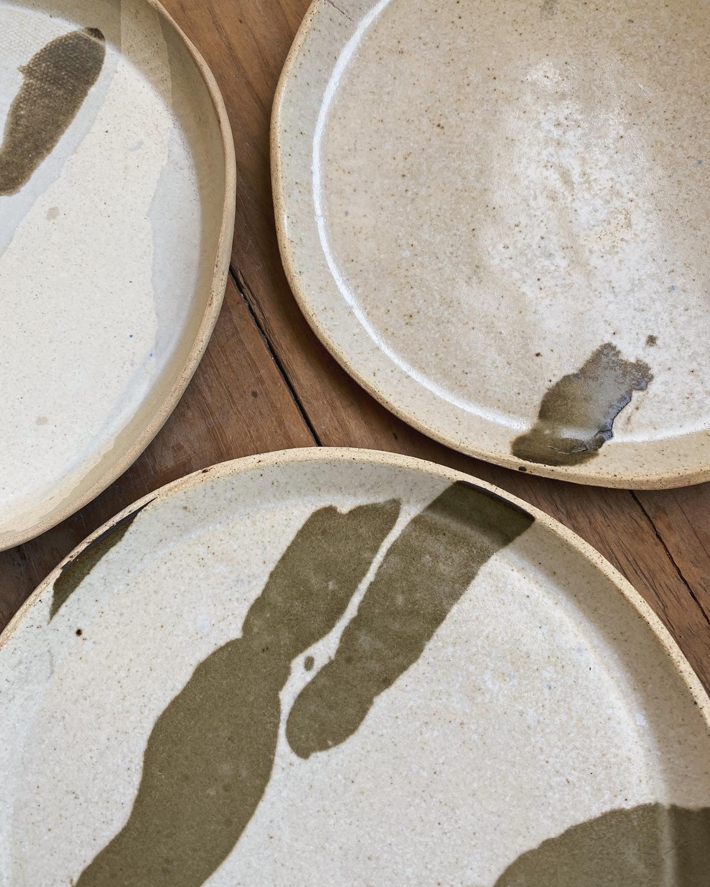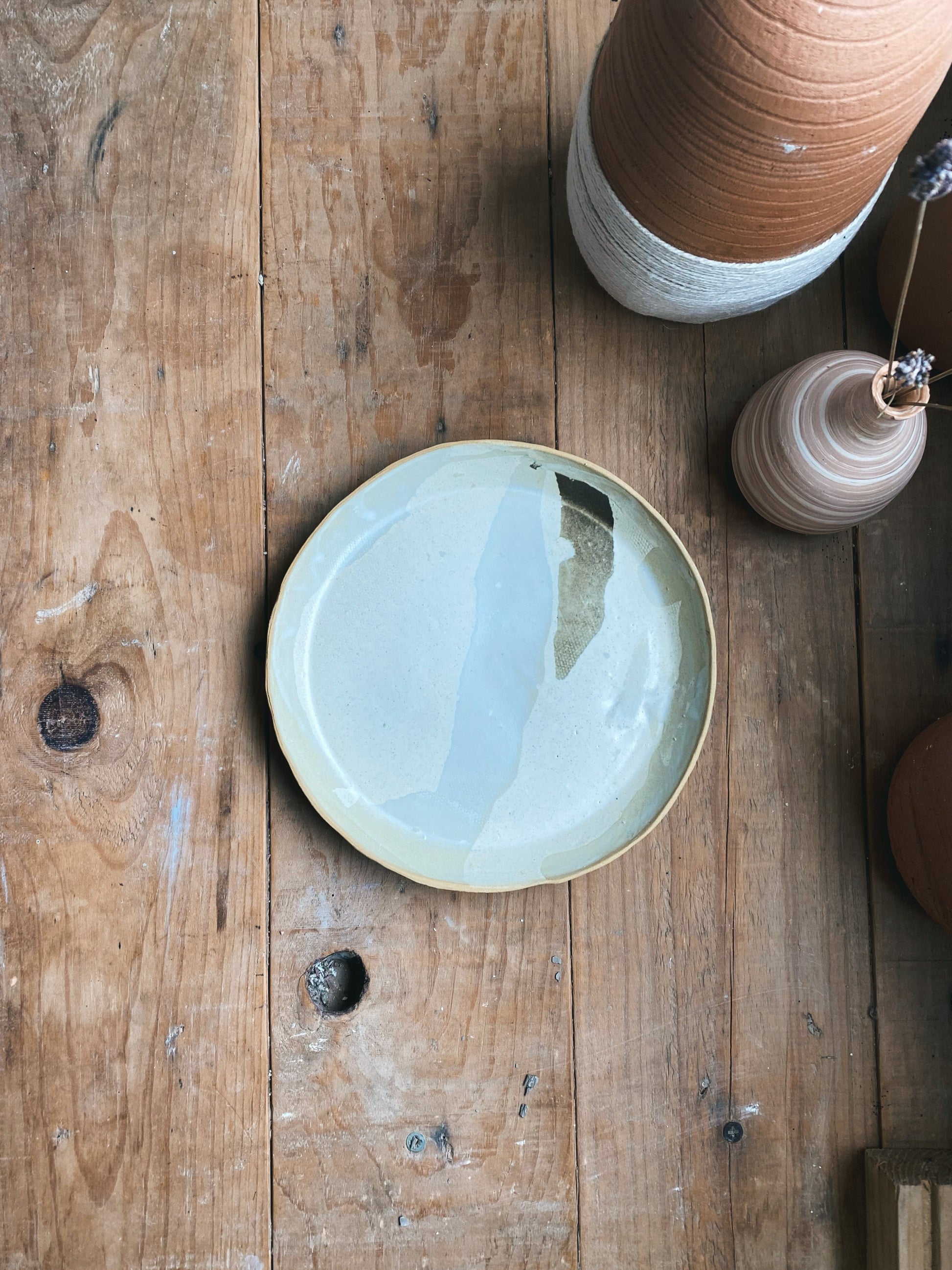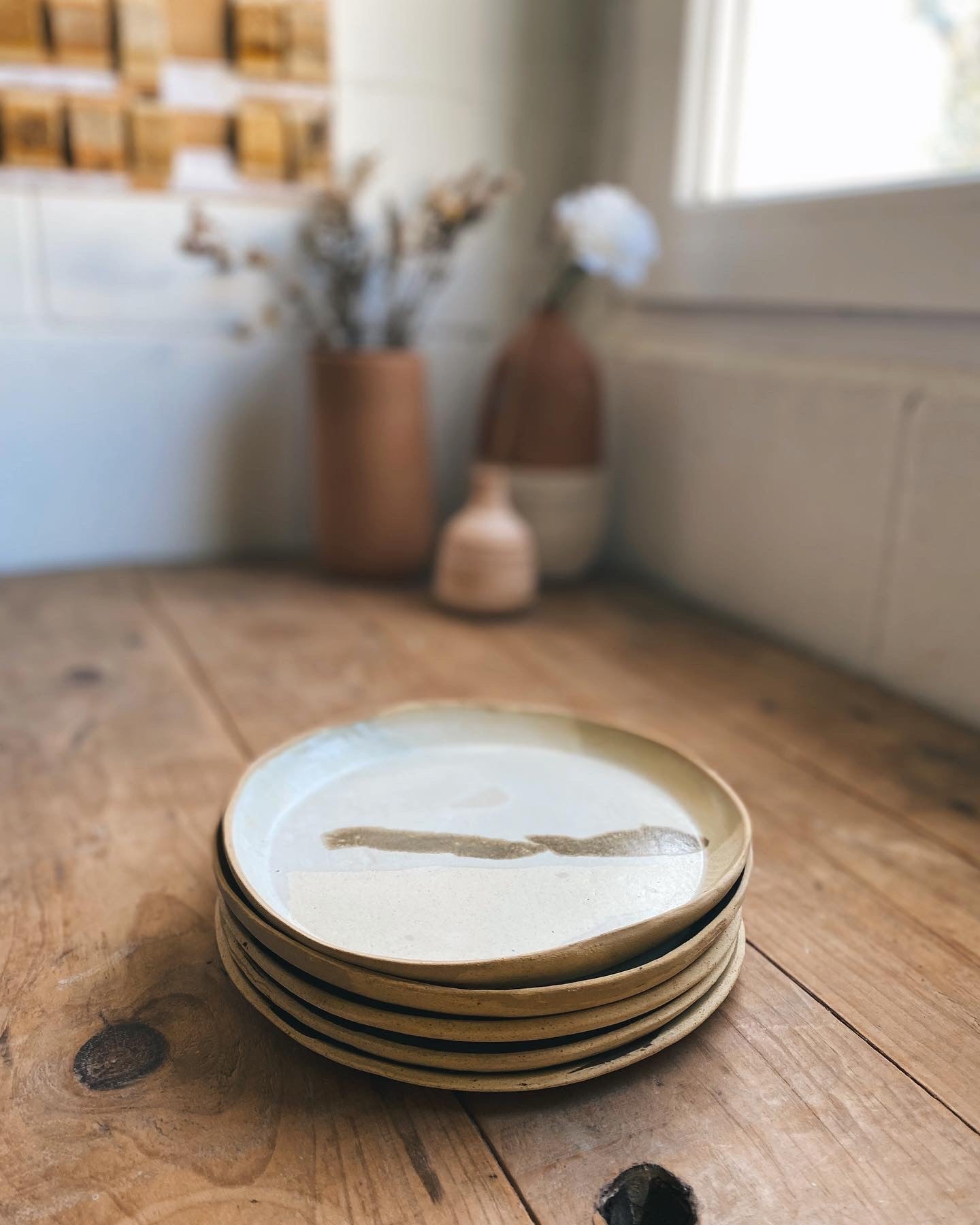 Plato pequeño hecho a mano con mezcla de gres blanco y negro .