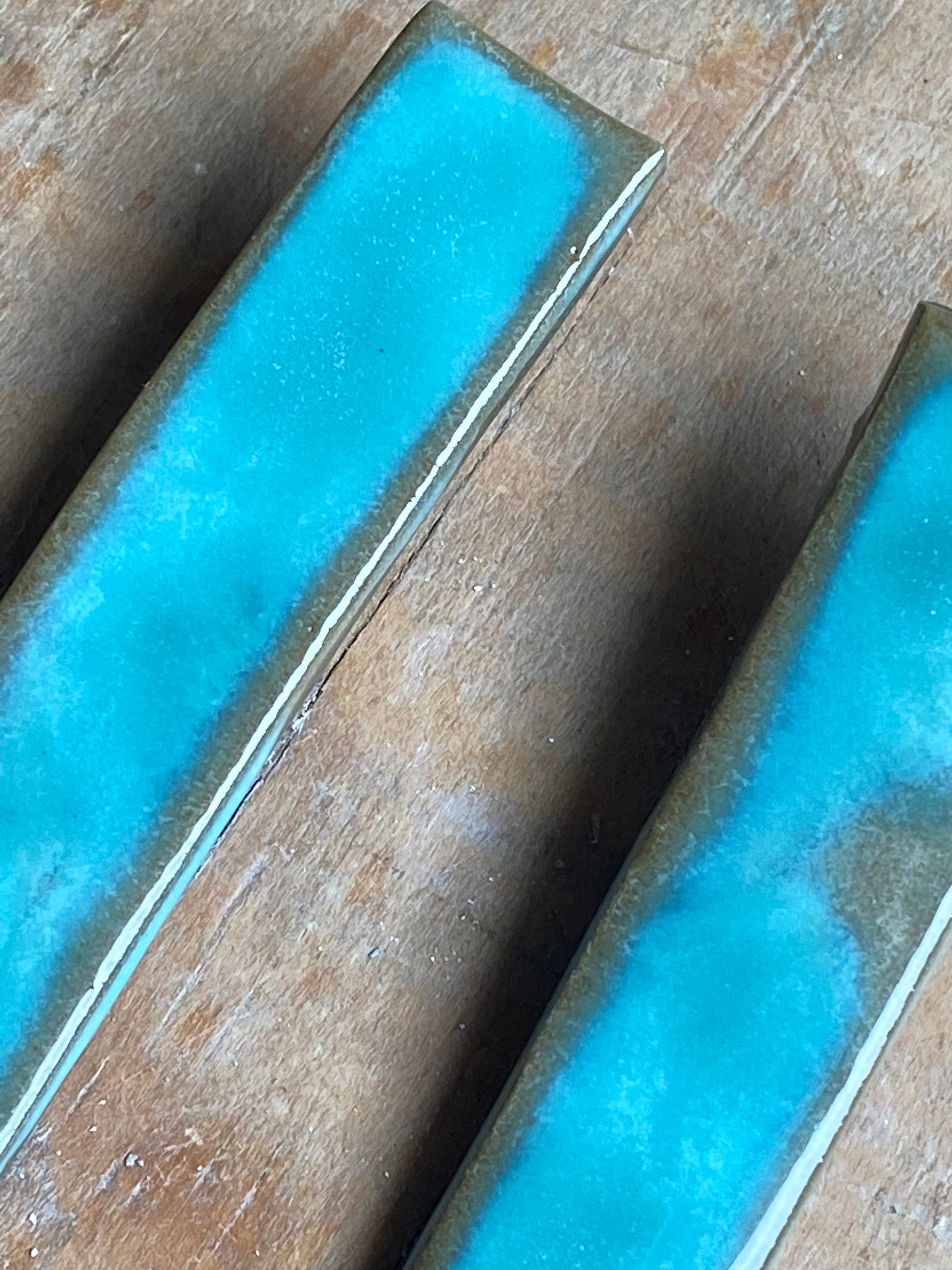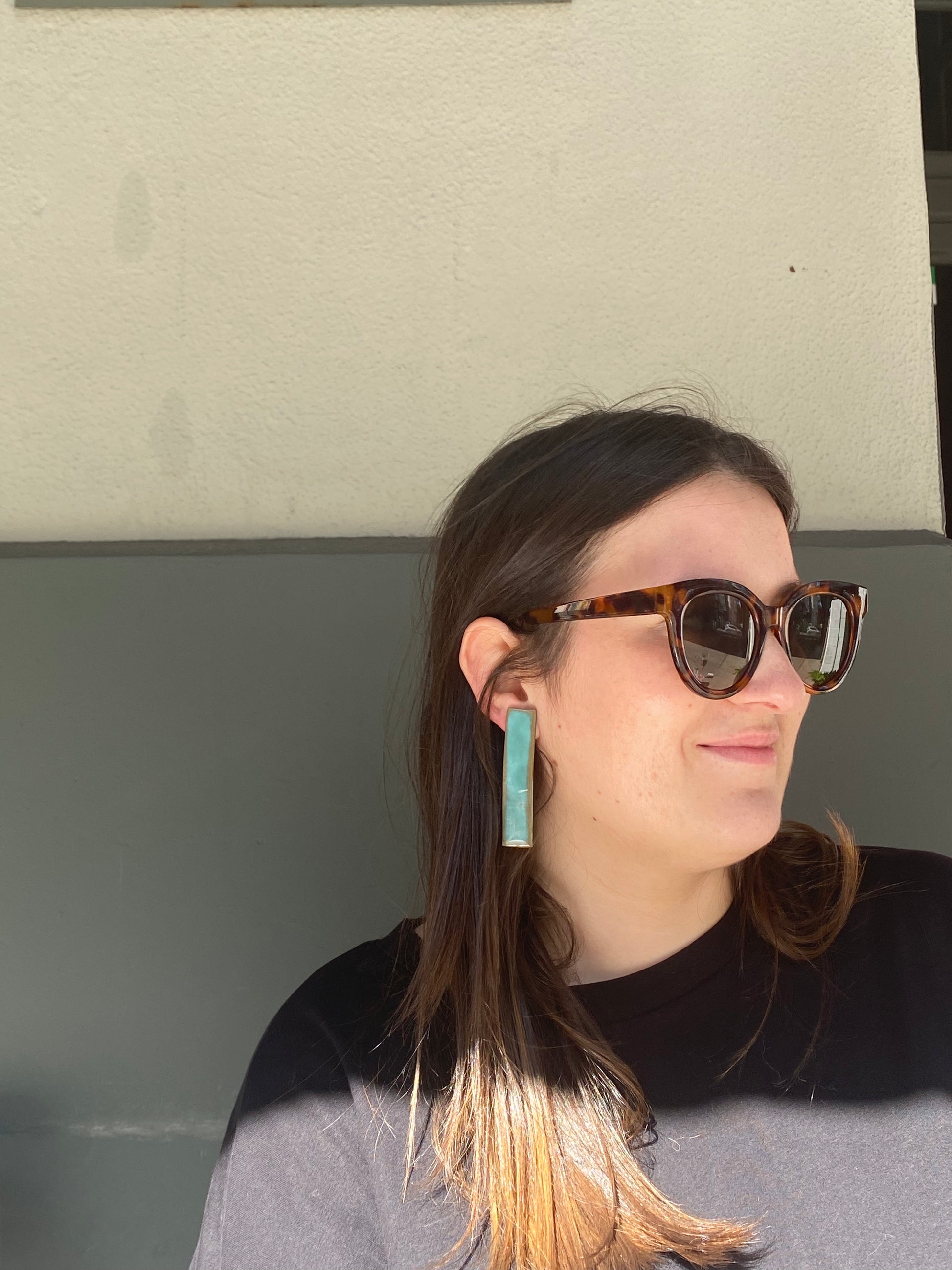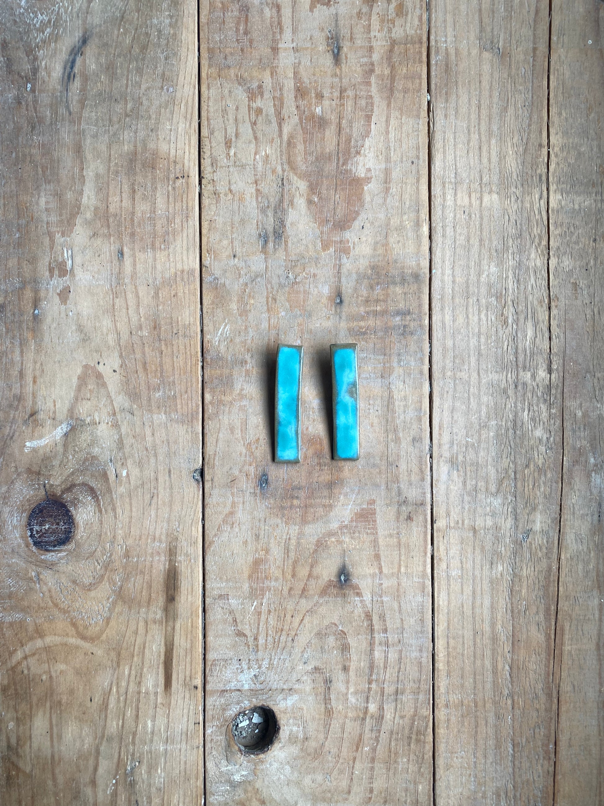 Pendientes hechos en porcelana blanca con esmalte artesanal color turquesa.