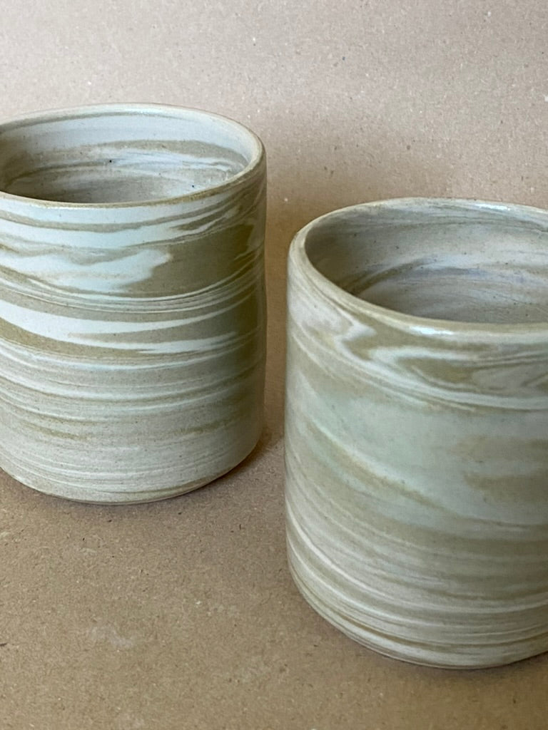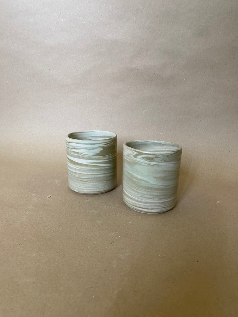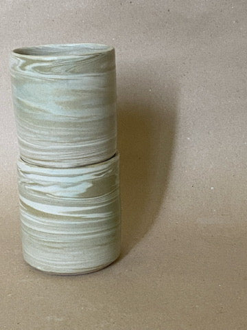 Taza hecha en torno con mezcla de arcillas. Esmalte artesanal color transparente brillante.